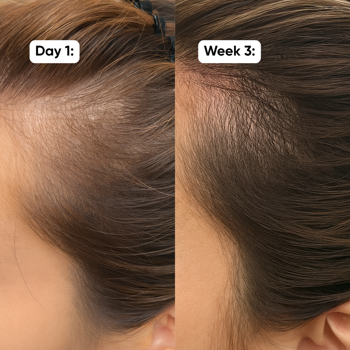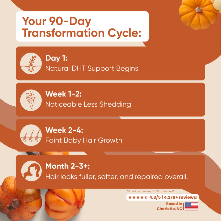 Expect to see improvement in texture and shedding within the first few weeks and visible density over 90 days.